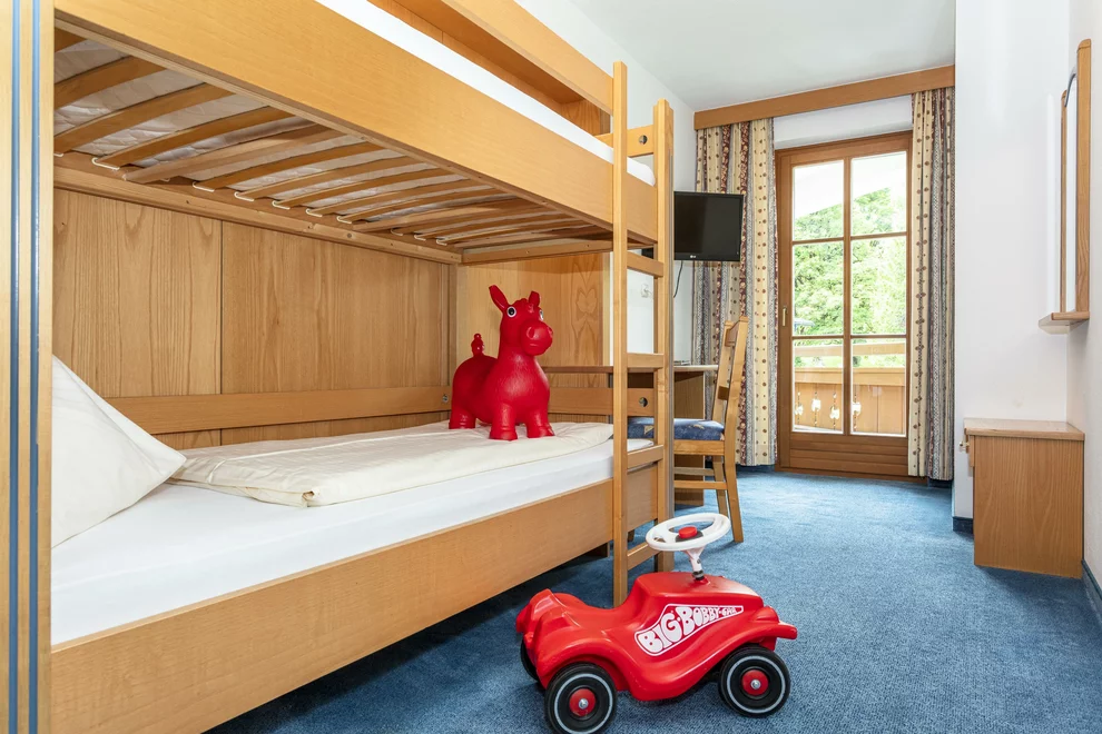Wir haben unsere Familienzimmer mit jeweils 2 Schlafzimmern (1x Doppelbett und komfortable Ausziehcouch und 1x mit Stockbetten für die Kinder), Badezimmer, WC und Balkon ausgestattet. Natürlich verfügen diese Zimmer über gratis WLAN und TV.