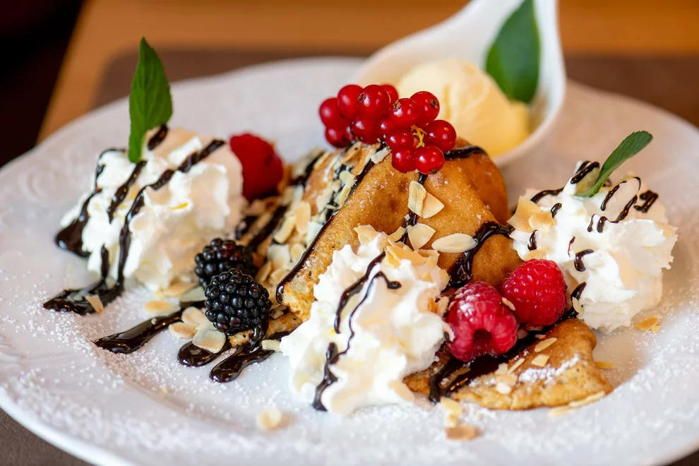 Wir verwöhnen Sie wahlweise mit einer Halbpension samt einem 4-Gänge-Menü am Abend oder nur mit unserem reichhaltigen Frühstücksbuffet in unserem Restaurant.