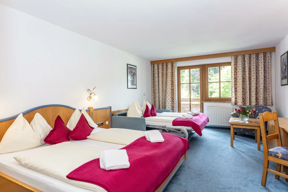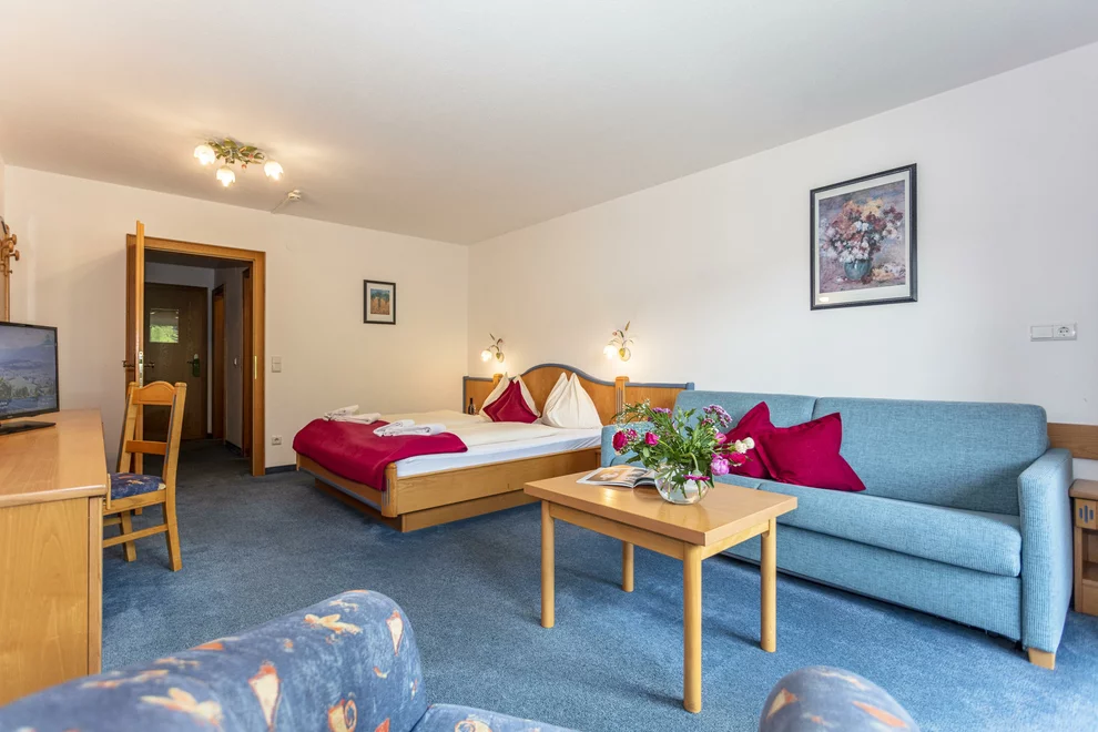 Da eine Familie viel Platz benötigt, haben wir unsere Familienzimmer mit jeweils 2 Schlafzimmern (2 Doppelbetten 1x zusätzliche komfortable Ausziehcouch), Badezimmer, WC und Balkon ausgestattet.