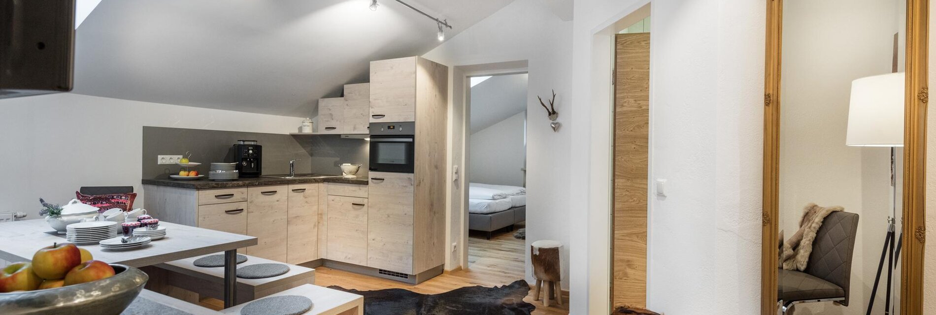 Gemütliches Appartement mit 50 qm Wohnfläche mit einem Schlafzimmer (3-bettig), Wohnschlafzimmer, Bad/WC und Küche sowie ausgedehnter Terrasse. Mit Holzdielenboden und hochwertiger Ausstattung. High-Speed-W-LAN und Flat-Screen-TV mit Internetanbindung.