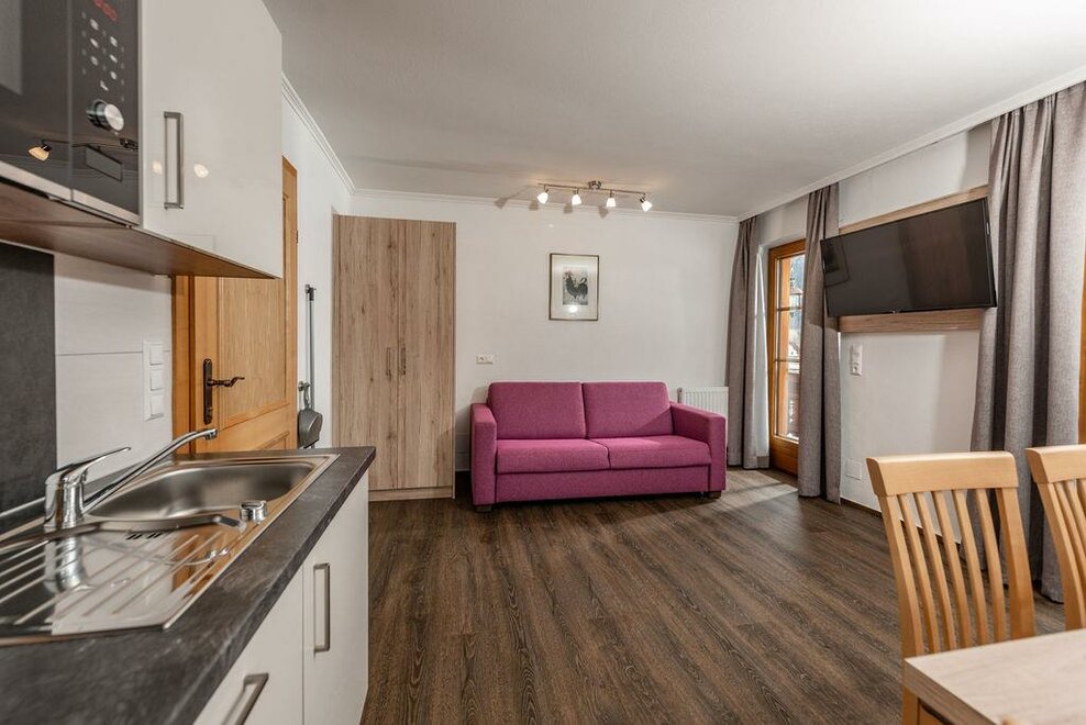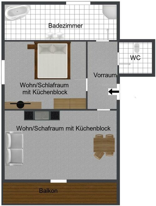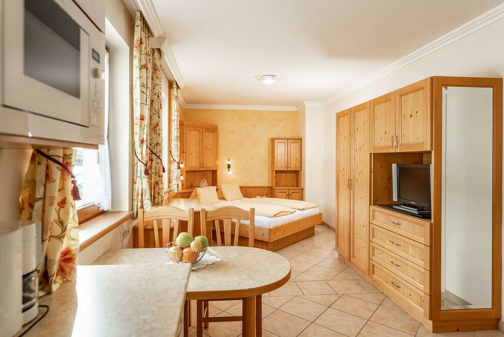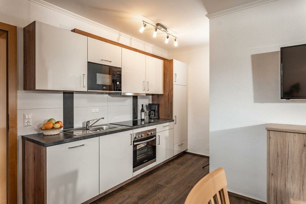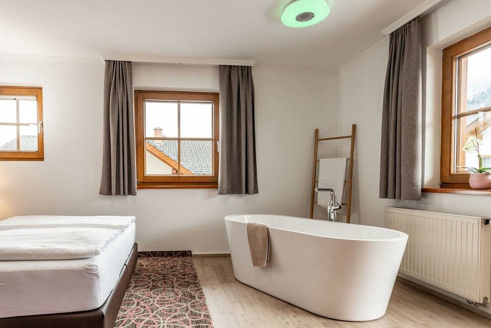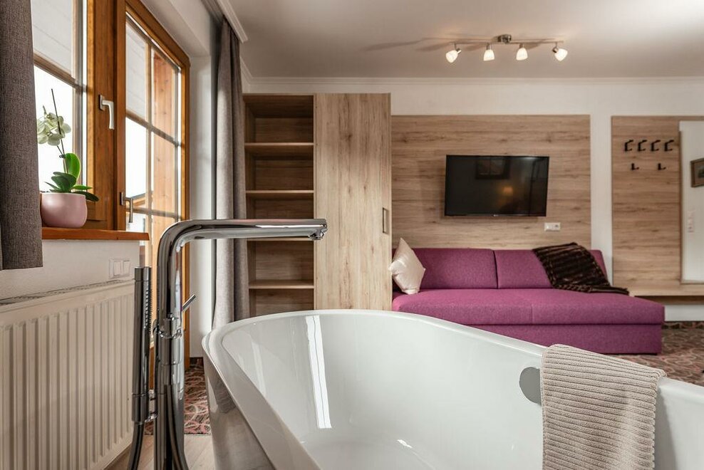 Die Appartements bieten höchsten Komfort - Ausstattung: 1 Schlafzimmer mit freistehender Badewanne, Wohnraum mit Küchenzeile, Diele, 1 Bad mit Dusche/WC, SAT-TV, Balkon, gratis W-Lan
