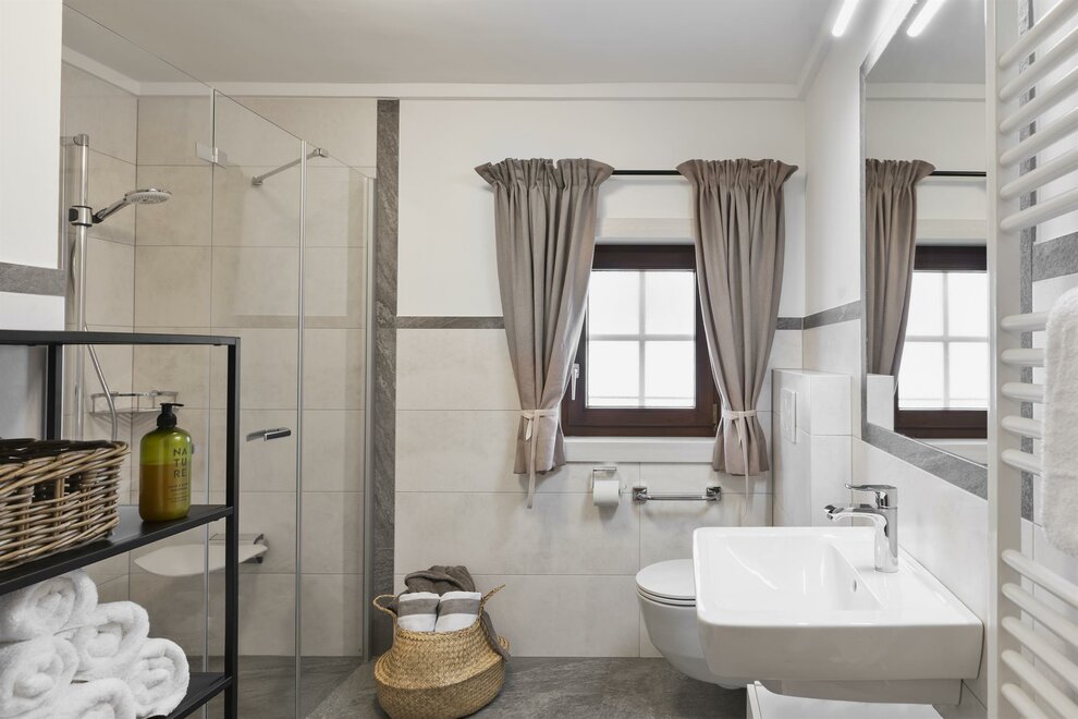 Nur wenige Schritte sind es durch unseren Landhaus-Garten und Sie gelangen zum Apartchalet Jakob. Die rund 75 Quadratmeter große Ferienwohnung bietet nicht nur Platz sondern vor allem viel Gemütlichkeit und Flair.