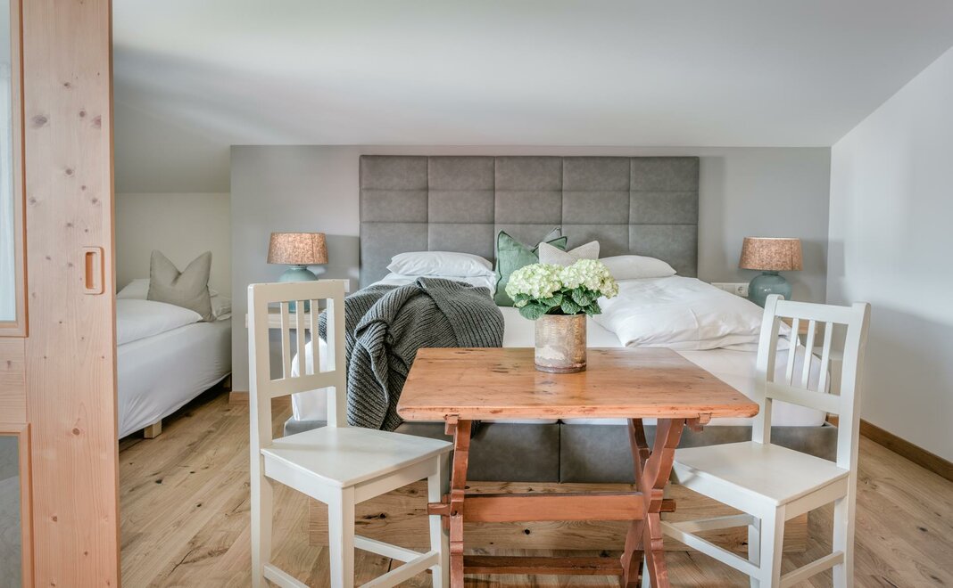 Elf individuell eingerichtete Zimmer im zeitlosen Landhausstil verleihen dem Hotel eine besondere Note. Die Mischung aus alten Bauernmöbeln in Kombination mit moderner Gemütlichkeit haben hier ein kleines Hideaway für Entspannung und Urlaub geschaffen.