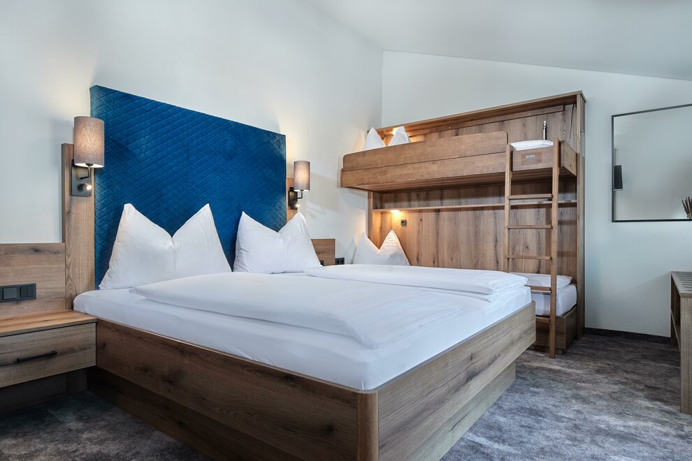 Familiensuite im Vogelnest (55 m²) mit zwei Schlafzimmern, zwei Bädern und einem gemütlichen Aufenthaltsraum, der auch als zusätzlicher Schlafraum genutzt werden kann. Perfekt für Familien, die Komfort und Geborgenheit suchen.
