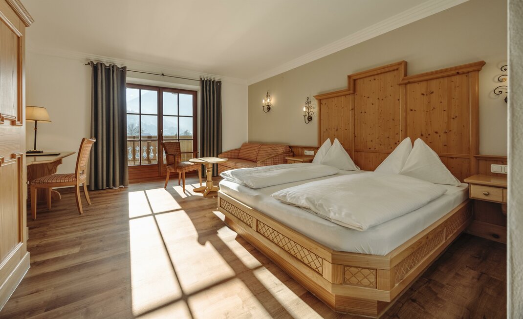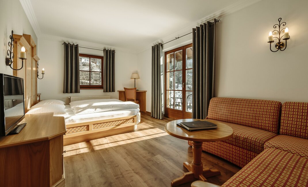 Doppelzimmer mit Balkon, gemütliche Schreib- und Sitzecke, Eltern- und Kinderzimmer räumlich getrennt, Diele, Dusche, separates WC, Flat-TV, Telefon, Zimmersafe, Haarföhn, gratis W-LAN. Für Familien: Eltern- und Kinderzimmer räumlich getren