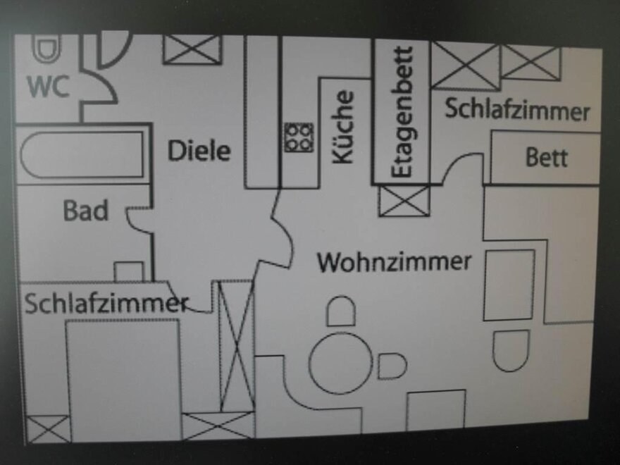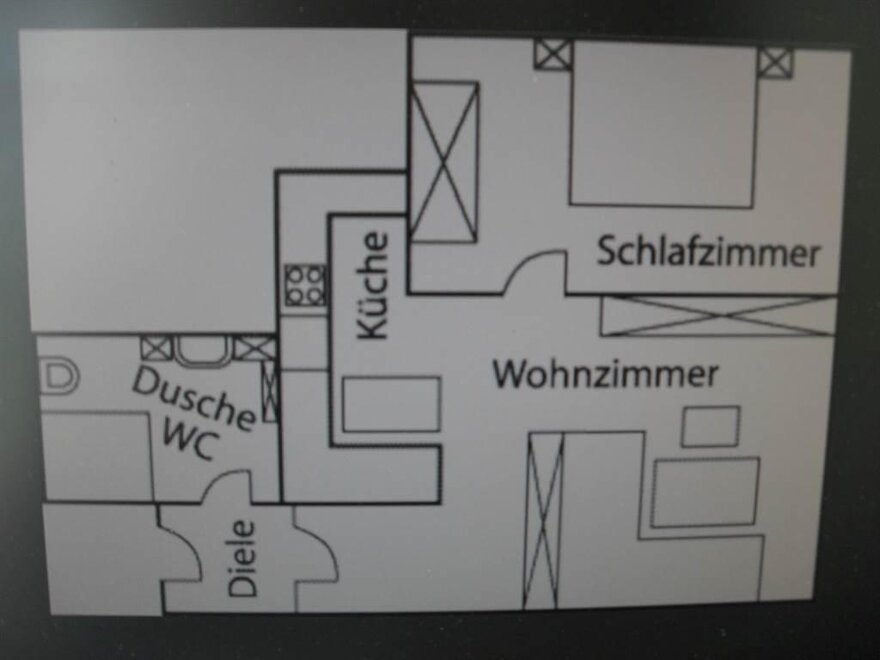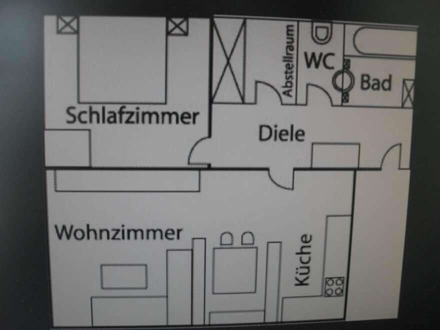 1- Zimmerwohnung für 1-3 Personen mit Diele, Dusche/WC, Küche mit Essecke ( Geschirrspülmaschine) , mit Wohnschlafraum, TV, W-LAN und mit sonnigem Balkon.1- Zimmerwohnung (35qm)für 1-3 Personen mit Diele, Dusche/WC, Küche mit Essecke ( Geschirrspülmaschine) , mit Wohnschlafraum und mit sonnigem Balkon.