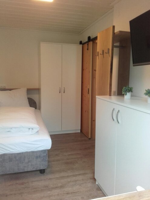 Geschirrspülbecken, Allergikerzimmer / -app., Gefriermöglichkeit, Geschirr vorhanden, Handtücher vorhanden, Geschirrspülmaschine, Backofen, Schrankbett, Bettwäsche vorhanden, Balkonmöbel, Fernseher, Kühlschrank, Kochnische, Tisch- und Küchenwäsche, Dunstabzug, Wohn-/Schlafräume kombiniert, Gefrierfach, Haustiere nicht erlaubt, Elektroherd, Kaffee-Maschine, Zentralheizung, WiFi, Sitzgruppe, Fußende der Betten offen, Neuwertiges Zimmer/App., Kabelfernsehen, Radio, Balkon