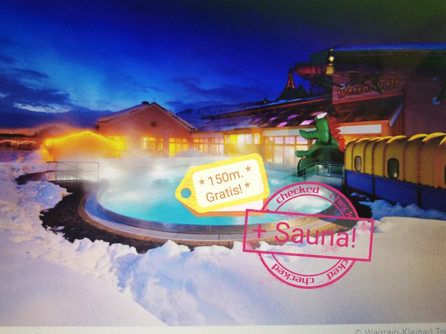 Jeden Tag gratis Eintritt in die Wasserwelt Wagrain 250 m , nur 500 m von den Seilbahnen Grafenberg und Flying Mozart entfernt. Ein kostenfreier Skibus hält in nur 50 m Entfernung. Eislaufplatz/Tennisplatz/Skiverleih sind sehr gut zu Fuß zu erreichen!