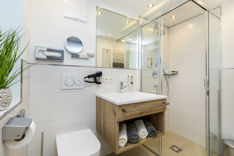 - Zimmer werden nach jeder Gast-Abreise sorgfältigst gereinigt, insbesonders oft berührte Gegenstände
