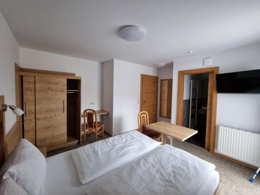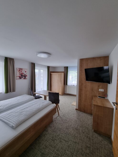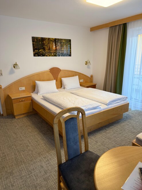 Doppelzimmer mit Balkon, ca.20m², Bad getrennt vom Zimmer, WC im Badezimmer, TV, Wifi, mit Frühstück