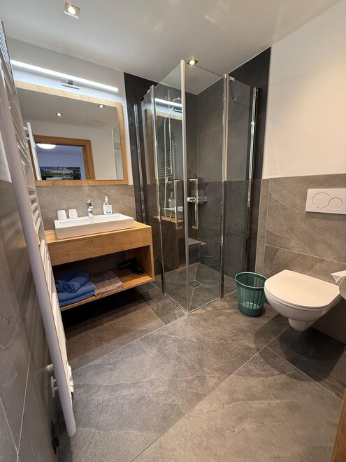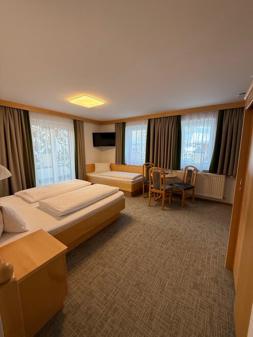 Dreibettzimmer, ca.25m², teilweise mit Balkon, Badezimmer und WC getrennt vom Zimmer, mit Fürhstück, Wifi, TV