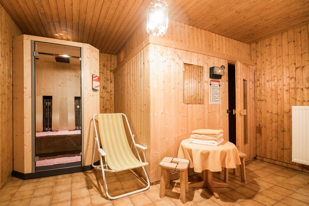 Wellnessbereich: Nach einem aktiven Tag können Gäste die Sauna im Wellnessbereich der Pension nutzen, um zu entspannen und neue Energie zu tanken.
