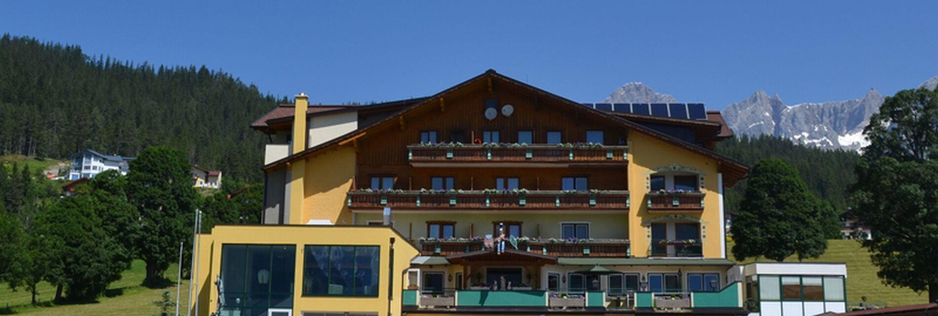 Zimmer mit Panoramablick auf den Dachstein und in die Schladminger Tauern.
