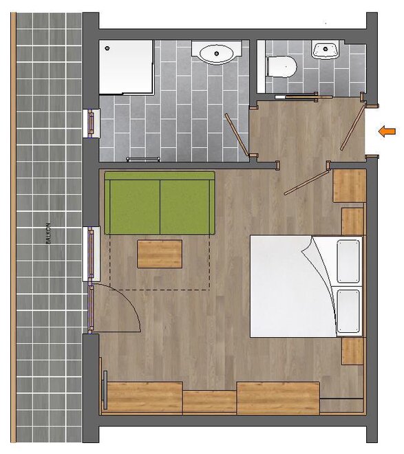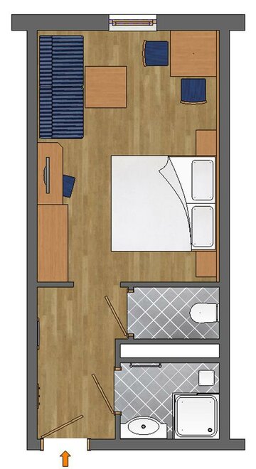 Größe 15 m² Belegung 1 Erwachsener , 0 - 1 Kinder Zimmer 1 Schlafzimmer 1 Zimmerdetails