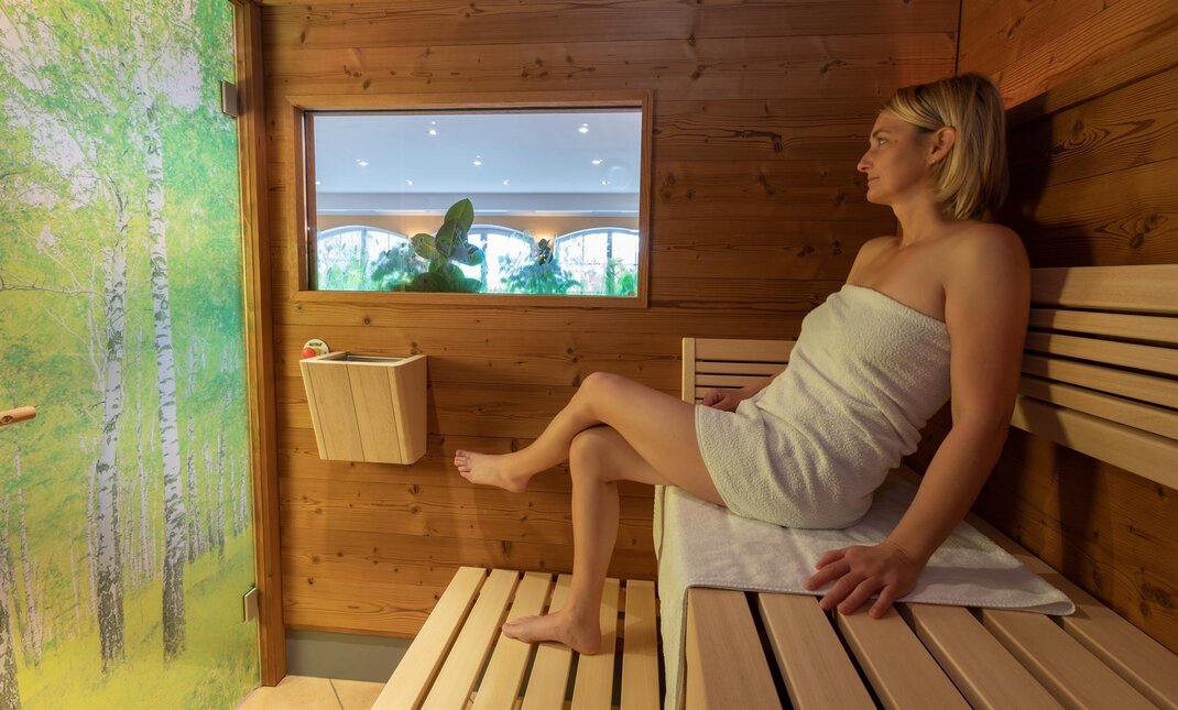 Moderne Zimmer und feiner Saunabereich mit Zugang zur Gartenoase