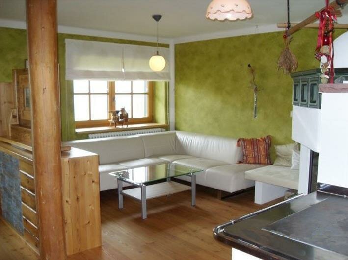 Unsere urige Ferienwohnung „Alpenrosen“ hat Platz für 4 Personen (33 qm) und einen direkten Zugang zur Terrasse. Der Wohn- und Essbereich mit integrierter offener Küche ist mit moderner Technik ausgestattet: In der Küche sind alle üblichen Elektrogeräte bis hin zum Nespresso-Kaffeeautomat vorhanden - im Wohnbereich ein 40" Flat-TV mit DVD Spieler, Internetradio etc. Das Schlafsofa bietet Platz für 2 Personen. Wellnessbereich mit Zirben- und Altholzsauna.