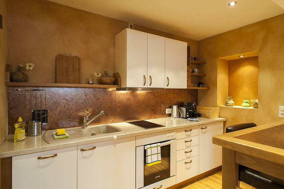 Die Wohnung für frisch Verliebte liegt im 1. OG und bietet viele Annehmlichkeiten: Wohn- und Essbereich mit integrierter offener Küche mit allen üblichen Elektrogeräten bis hin zum Mikrowellen-Gerät und Nespresso-Kaffeeautomat. Zudem gibt es einen 40" Sat-TV, DvD Player sowie eine Audio-Anlage.