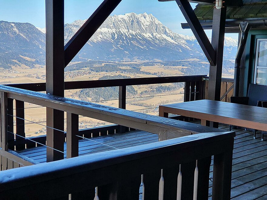 Unsere elegante Ferienwohnung bietet Raum für Entspannung für 2 Personen (33qm). Eigener Balkon mit Panoramablick über das Ennstal.