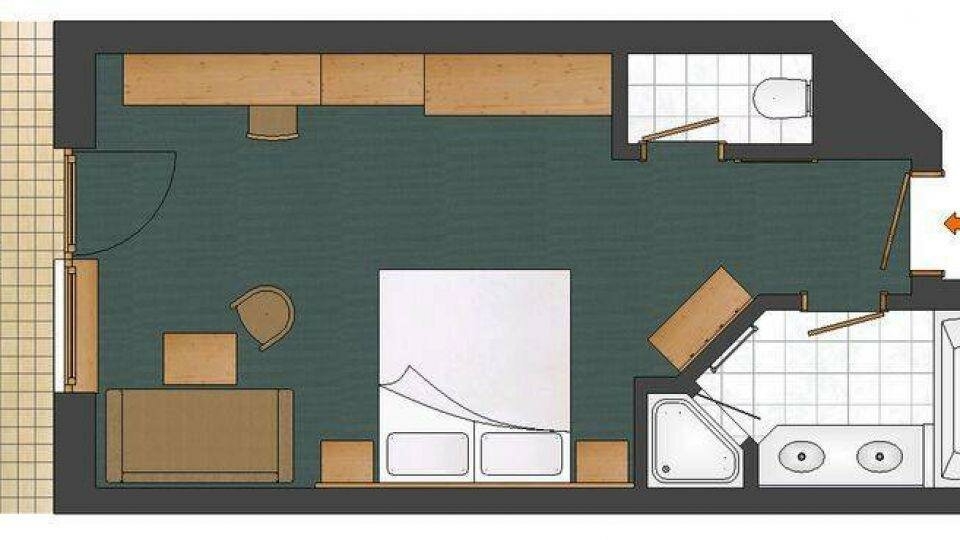 Einzelzimmer ca. 22m², Dusche und WC