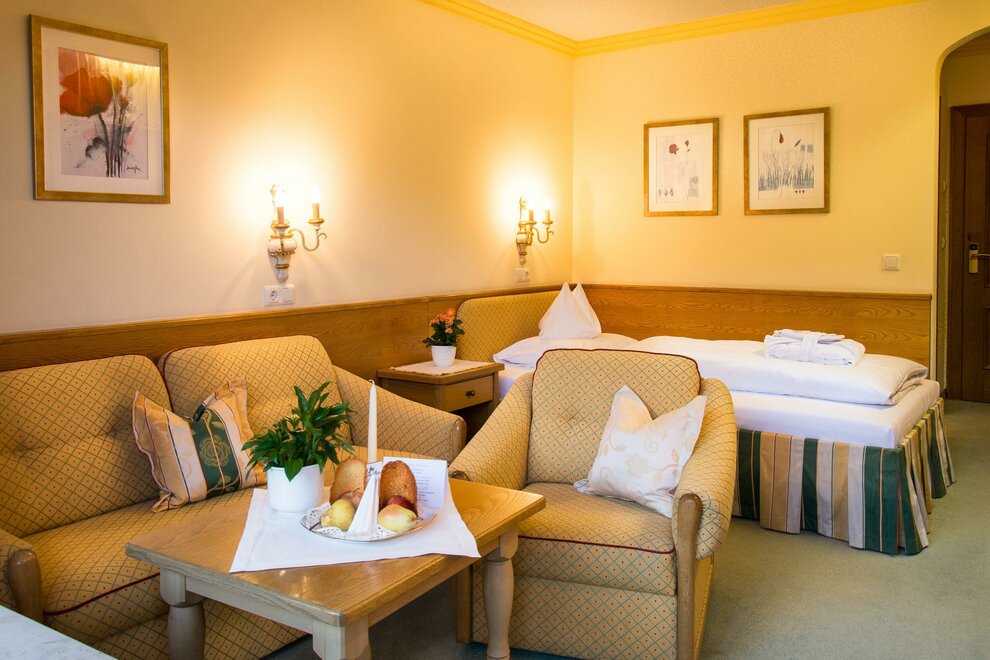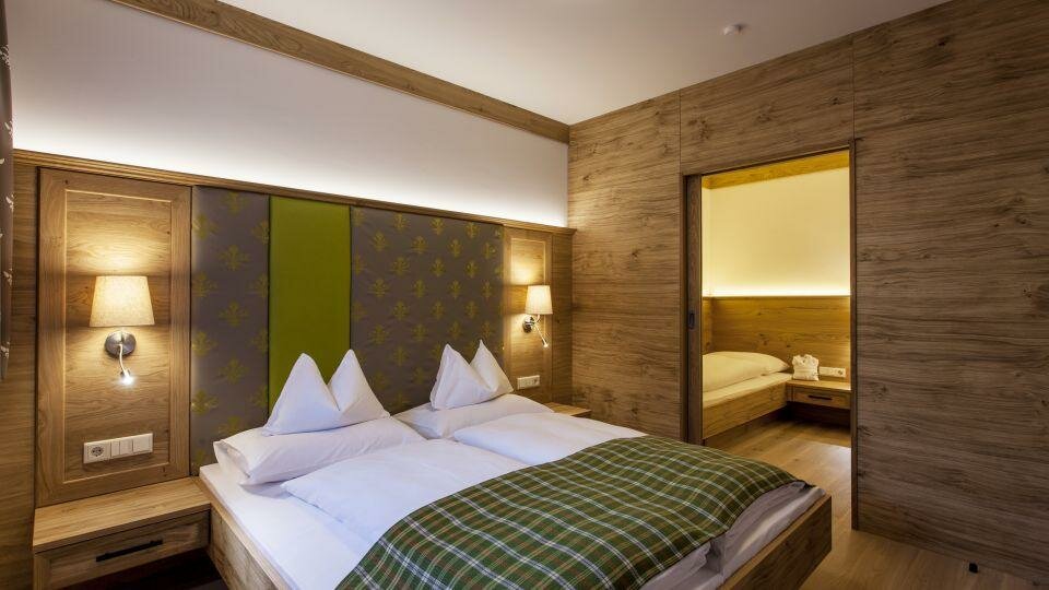 Unsere 37 romantischen, mit Vollholzmöbel eingerichteten Zimmer und Studios sowie 13 Junior-Suiten laden zum Entspannen und Verweilen ein. Einen fantastischen Blick auf die Gasteiner Bergwelt erhaschen Sie von unserer Panoramaterrasse aus.