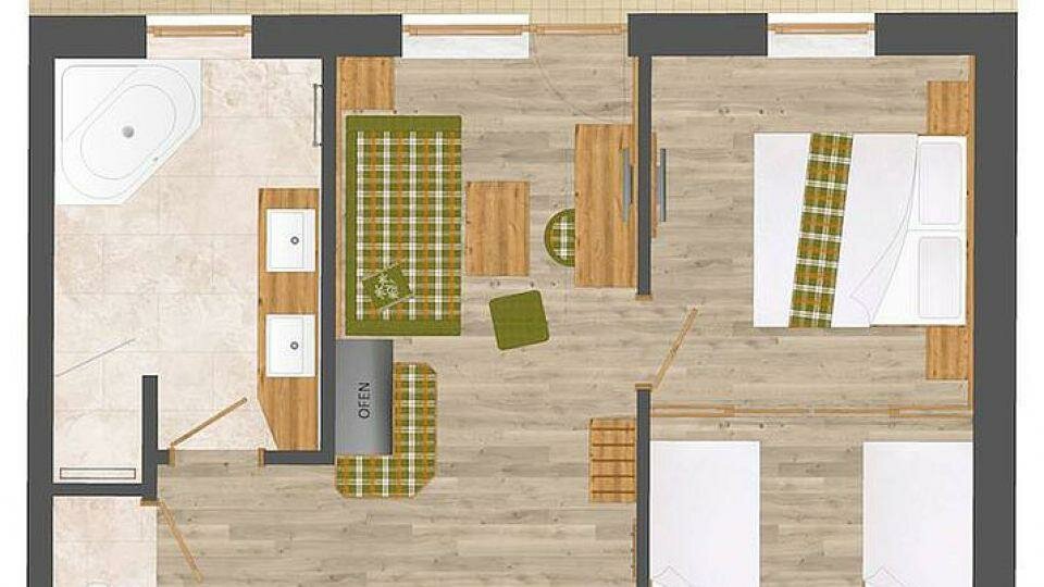 Größe 35 m² Belegung 1 - 2 Erwachsene , 0 - 2 Kinder Zimmer 1 Schlafzimmer 1 Zimmerdetails