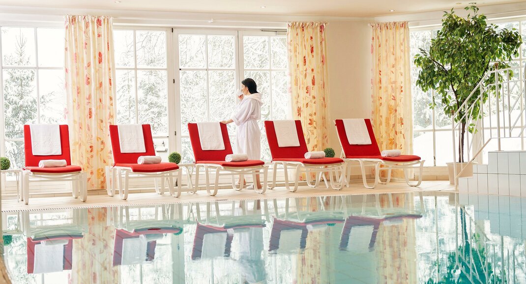 In unserem hauseigenen, 850m² großen Wellnessbereich erwartet Sie alles was das Herz begehrt. Lassen Sie sich bei muskellösenden Massagen verwöhnen und entspannen Sie in unserer Saunalandschaft, den Dampfbädern oder in unserem Panorama Hallenbad mit angrenzender Liegewiese.