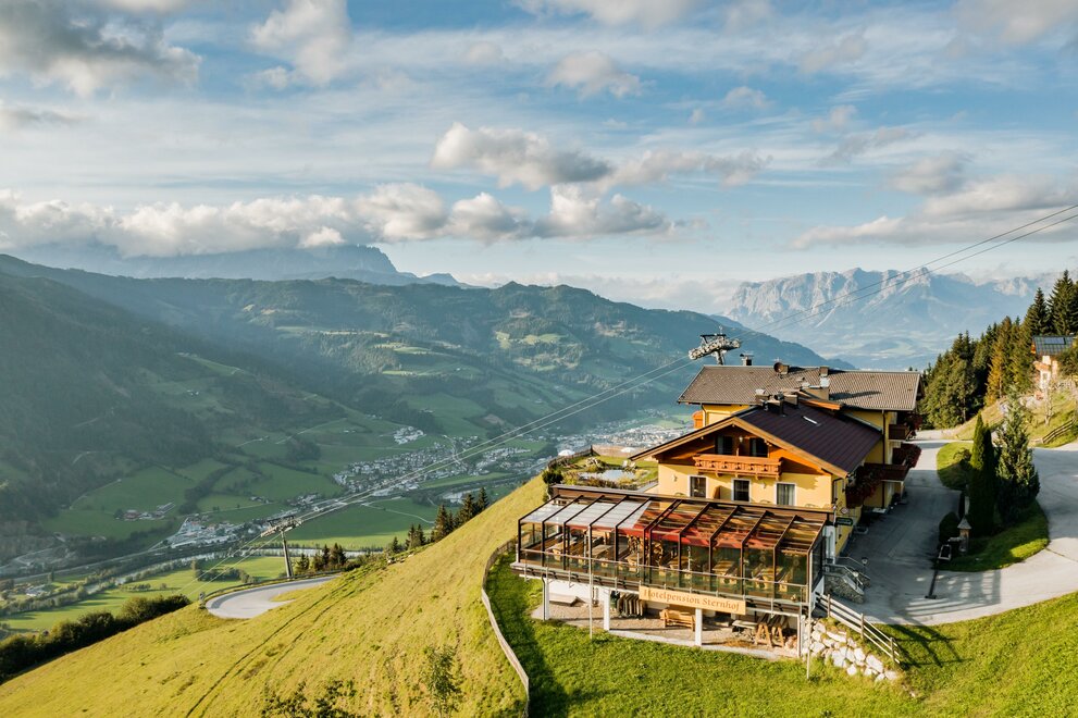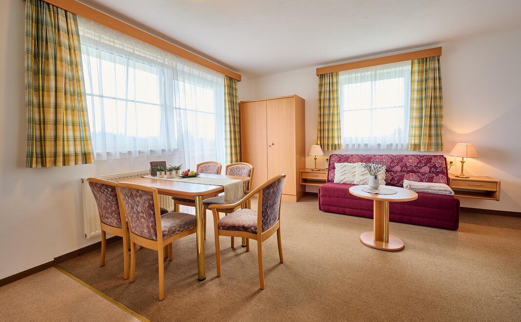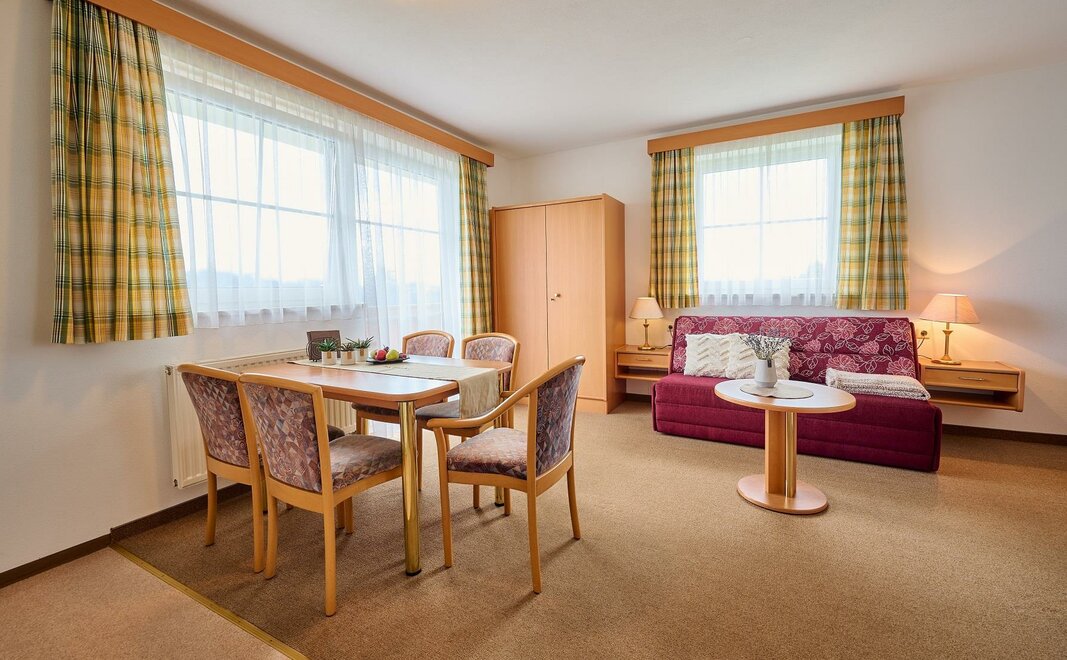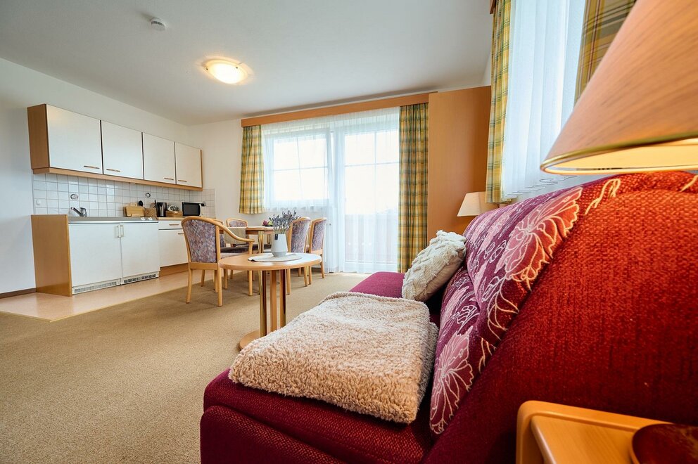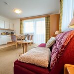 Appartements für 2 bis 4 Personen, Wohnküche mit ausziehbarer Doppelcoach, separates Schlafzimmer. Diese Appartements begeistern Sie mit herrlichem Panoramablick über die Salzburger Berge.