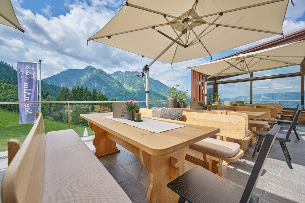 NEU Dez 21: Genießen Sie ganz oben den grandiosen Ausblick auf die Salzburger Berge! Moderne Doppelzimmer – klein aber fein mit 20m² und Balkon für 2 Personen