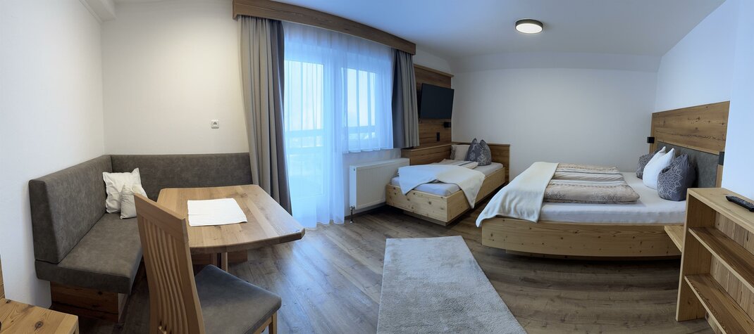 Wohn- Schlafraum mit Essecke und Terasse.Ausstattung Zimmer/Appartement