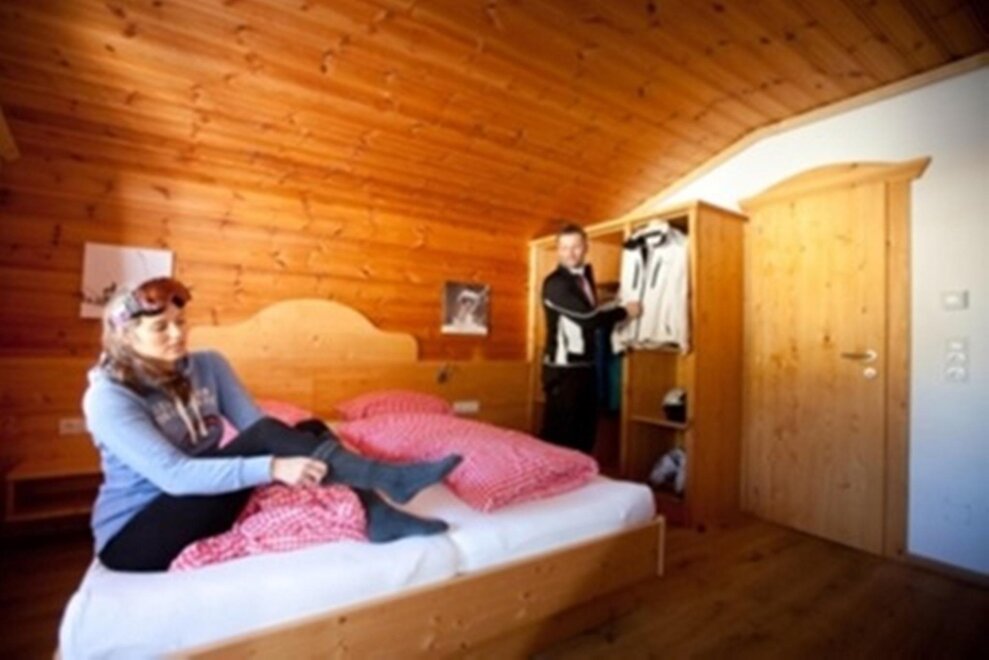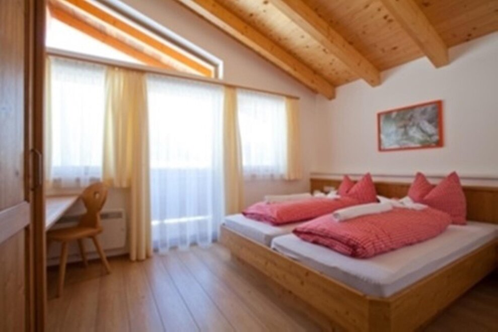 220 m² für 8 bis 14 Personen, aufgeteilt in 7 Doppelzimmer mit 6 Du/WC, Sauna, Wohnküche, Südbalkon.