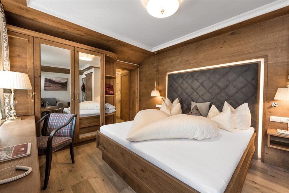 sehr große exklusive Suite eingerichtet in hellem, hochwertigem Fichtenholz und freundlichen Stoffen