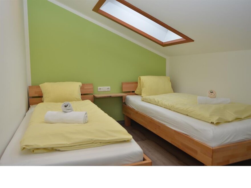 sowie ein extra Zweibettzimmer mit 2 Einzelbetten, ein Wohnraum mit voll ausgestatteter Küche laden zur erholsamen Nacht ein. Die Schafwoll Bettwäsche mit Zirbenflocken läßt Sie zur Ruhe kommen.
