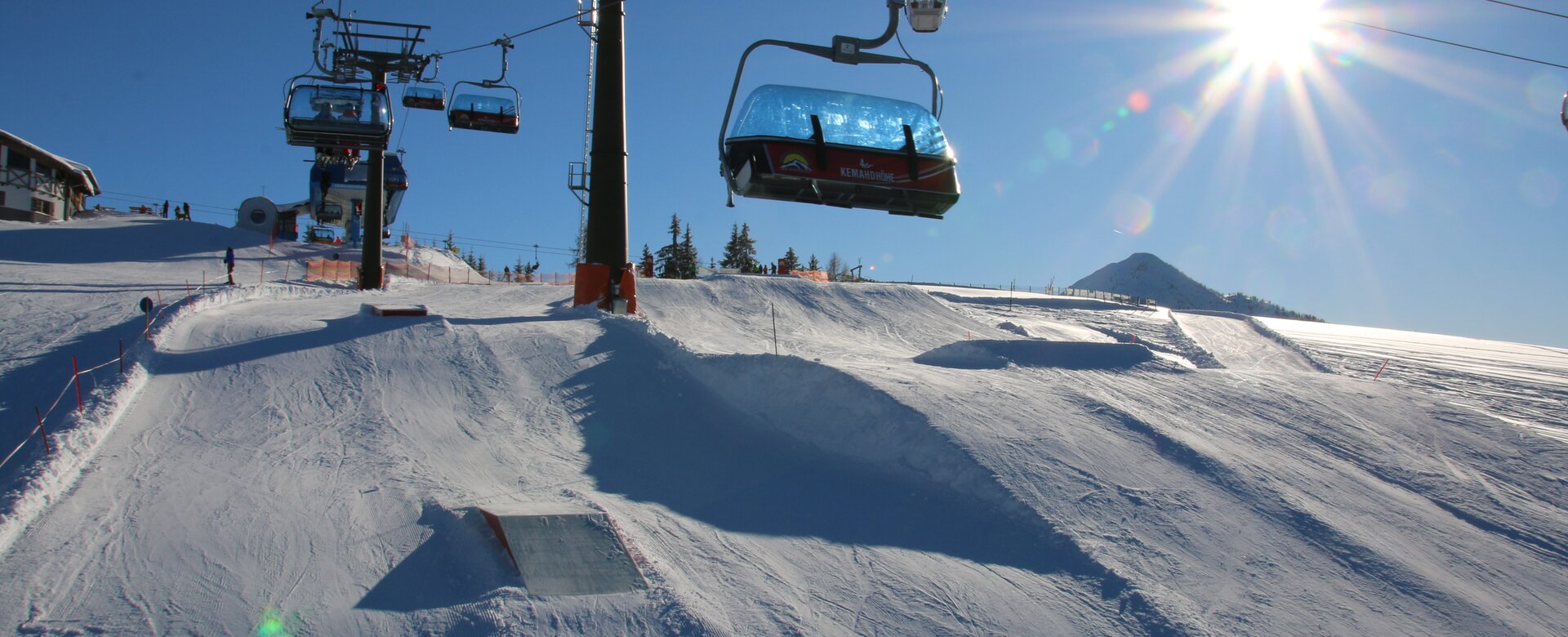 Der Beginnerpark Kemahdhöhe bietet den perfekten Playground für angehende Freestyle-Profis. Zwei Kicker mit zwei bis vier Metern Sprungweite und drei Boxen warten auf Snowpark-Greenhorns.