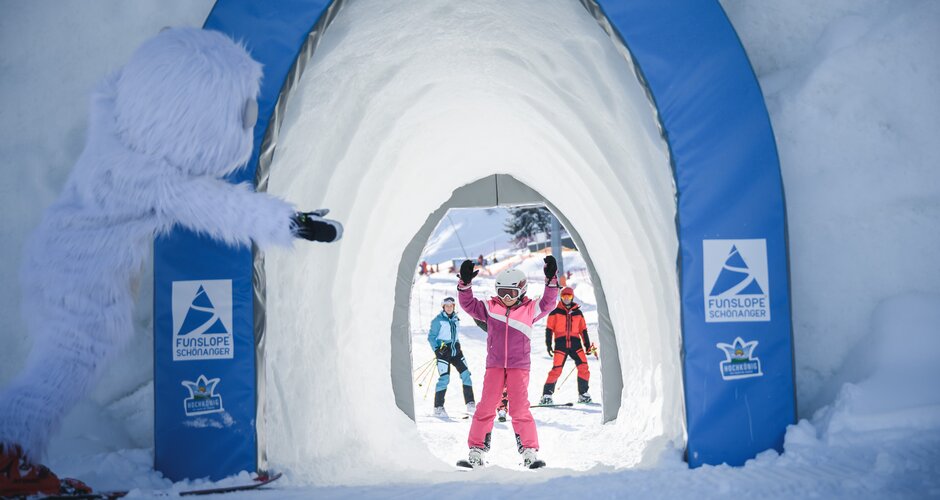 Die Funslope Schönanger bietet ein neues Skierlebnis für die ganze Familie. Auf einer Gesamtlänge von 850 Meter können sich Anfänger genauso wie Fortgeschrittene so richtig austoben, es warten kleine Sprünge, steile Kurven, eine Rainbow Butterbox, ein Tunnel uvm.