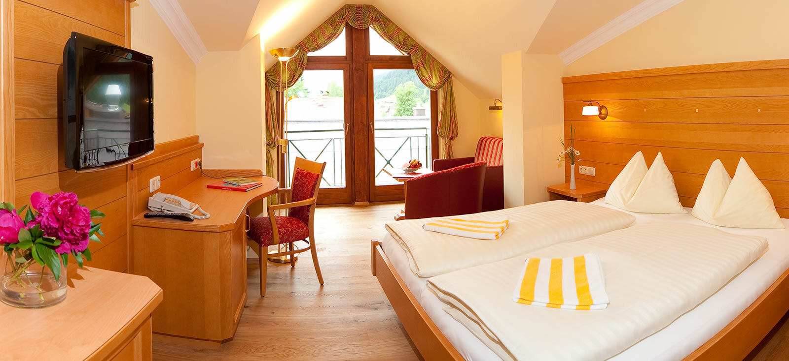 ► Großzügige Zimmer mit Wohnbereich, Dusche, WC, Kabel-TV, Telefon, Zimmersafe, Föhn