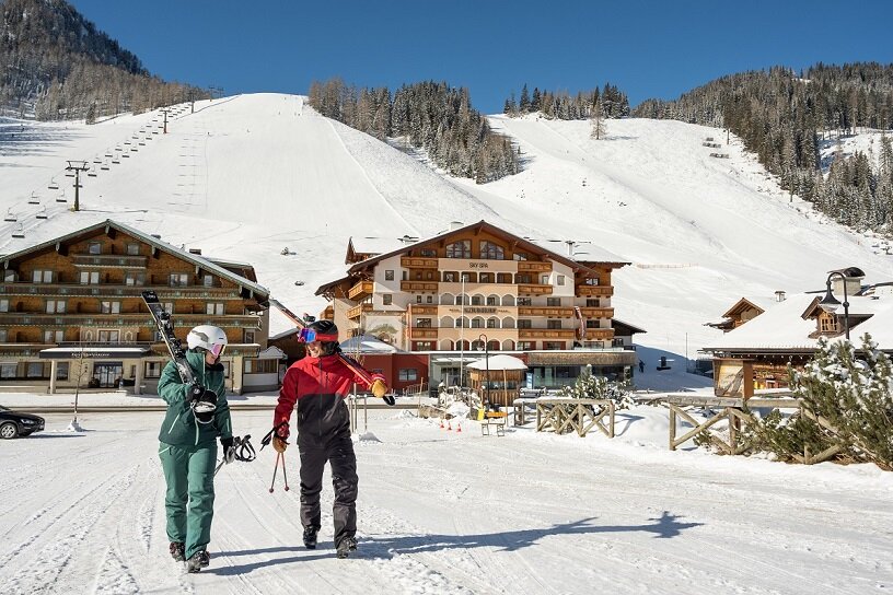 Vom Luxus-Skikeller geht's direkt auf die Piste in Ski amadé. Wohltuende Wellness-Momente im SKY SPA und ein edles Glas Wein oder ein Cocktail in der Panorama-Kaminlounge runden das Verwöhnpaket ab.