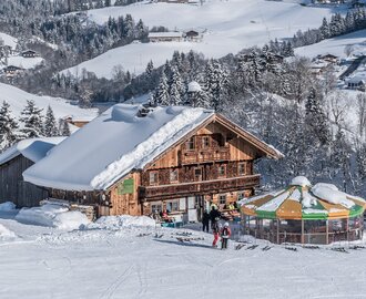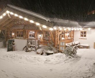 „Der Almstadl“ liegt auf 1666 m Seehöhe, direkt an der Skipiste Flying Mozart. Im Winter der Treff für Skifahrer und Boarder...