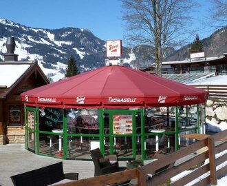 Die Schirmbar Thomaselli befindet sich direkt bei der Talstation der Dorfgasteiner Bergbahnen. Genießen Sie den Nachmittag auf der Sonnenterrasse! Das Restaurant bietet köstliche österreichische Spezialitäten an!