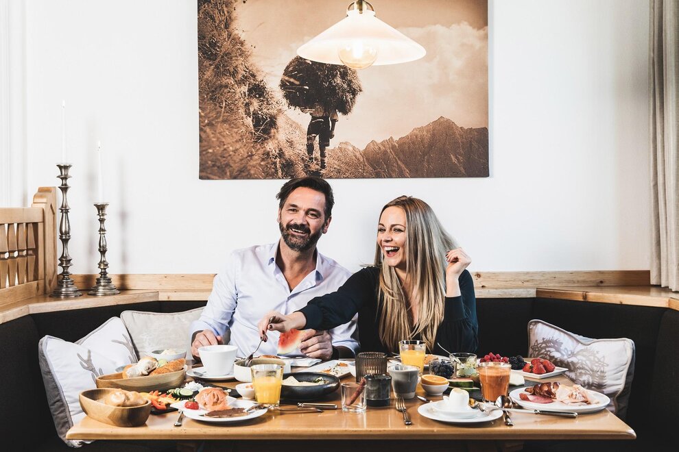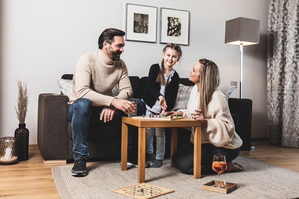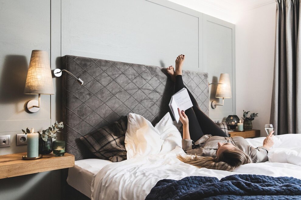 Rooms in Alpine Lifestyle, box spring bed, comfortable couch, modern bathroom with rain shower, mostly double washbasin, partly bathtub, towel dryer, hairdryer, separate WC, telephone, cable flat screen TV with radio, WiFi, minibar, safe, desk, balcony.