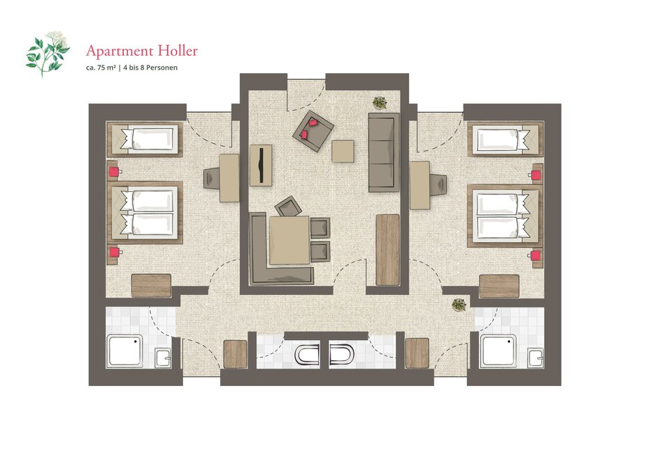 Spacious modern apartment with 2 separate bedrooms and a living room, large balcony, and views of the mountains of Hüttschlag and the main Alpine ridge. Perfect for families who prefer a bit more space.