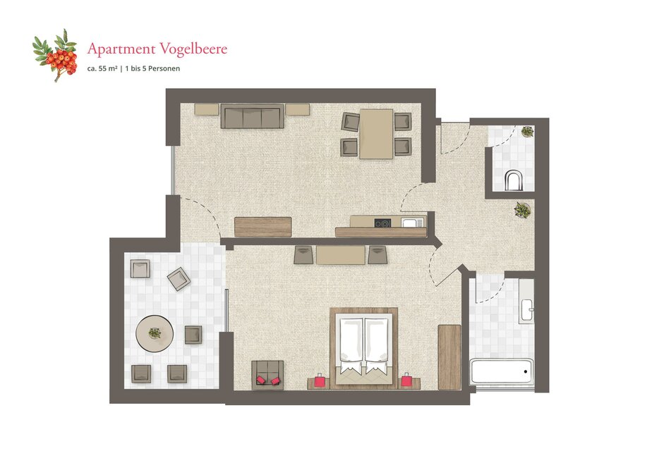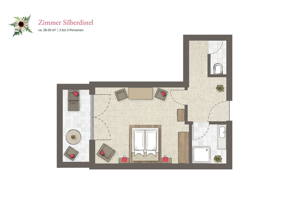 In summer, it is the starting point for beautiful and countless hikes. In winter, it is located right at the ski bus stop. The bus takes our guests to and from the gondola station nine times a day (7km, approximately 10 to 15 minutes).