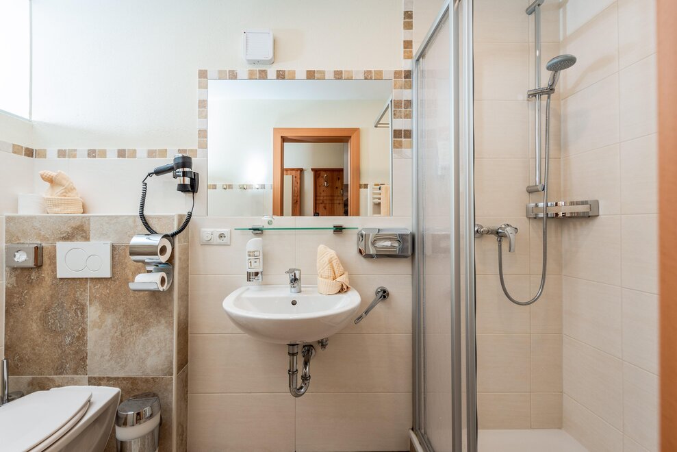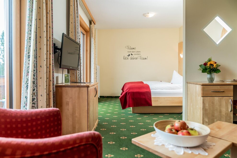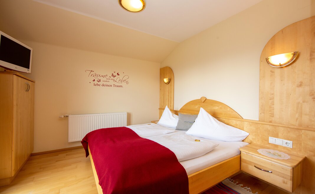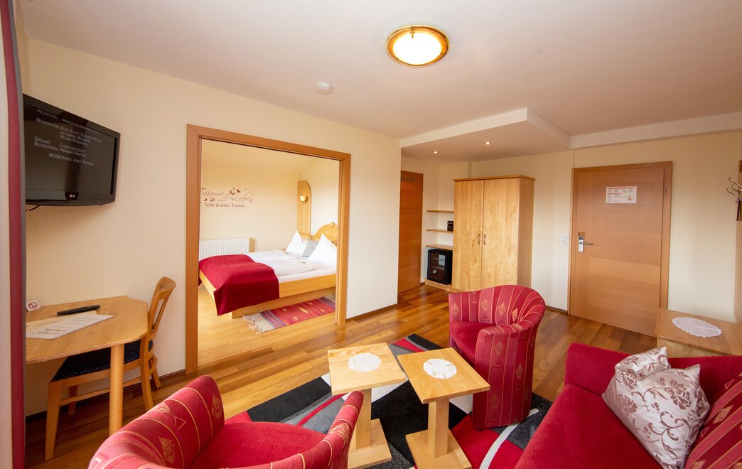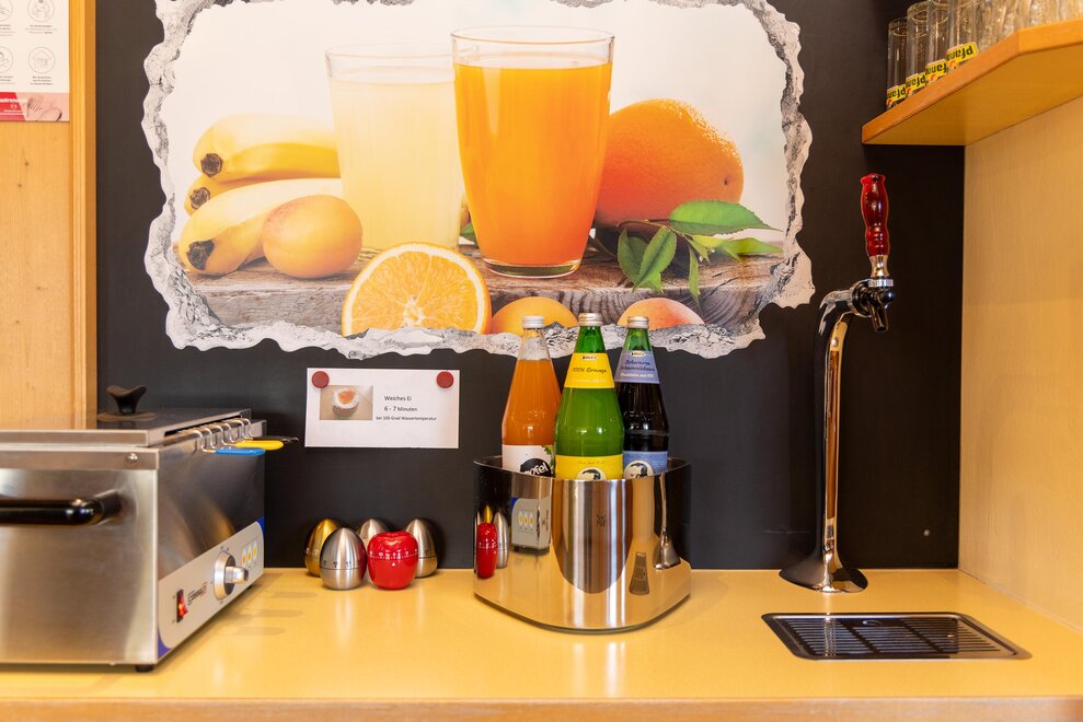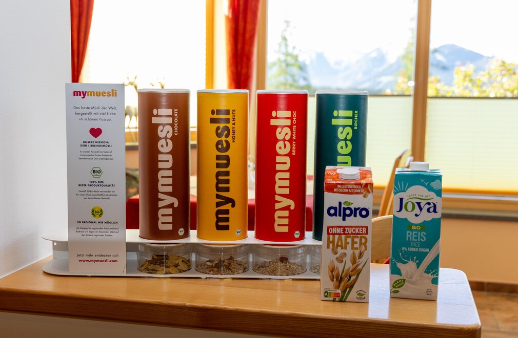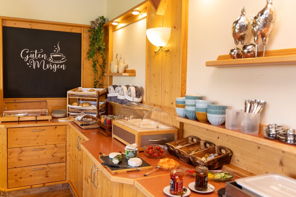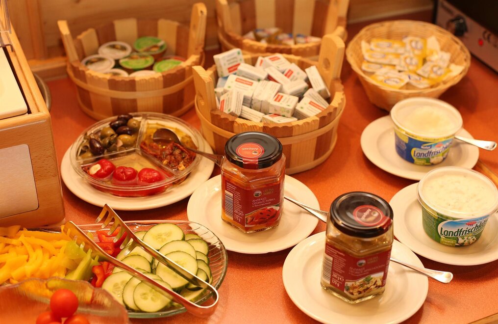 All our en-suite rooms - 4 double rooms, 5 Appartements 65 m2, 45 m2, 35 m2 - are equipped with bright furniture, shower and WC, hair dryer, flat screen with SAT-TV and Sky. Moreover, there is free of charge WLAN. Wake up gently with the morning sun, open the balcony door and breathe in the fresh mountain air. Your day starts with a perfect breakfast. Choose from the great variety of our buffet breakfast including a selection of fresh fruit and bread rolls, all sorts of mueslis and cereals, tea or coffee.