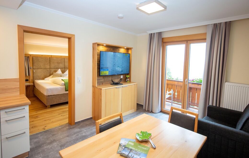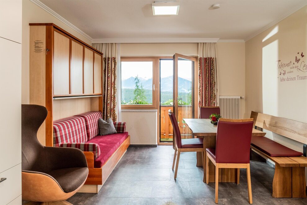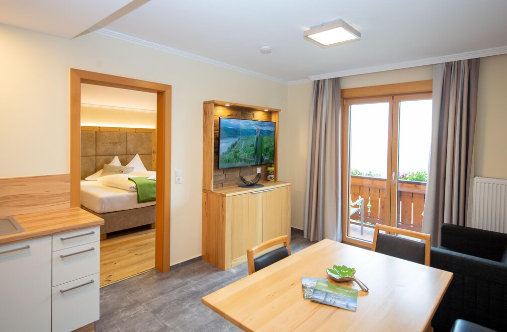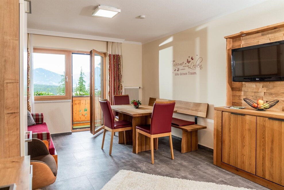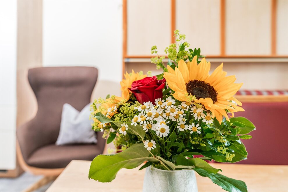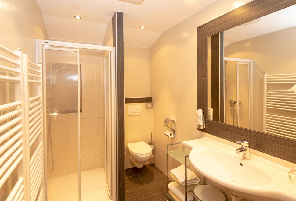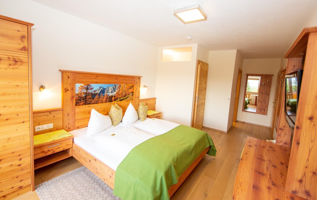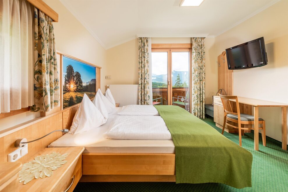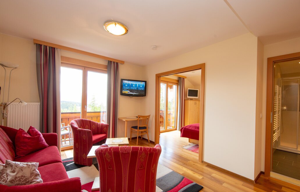 All our en-suite rooms - 4 double rooms, 5 Appartements 65 m2, 45 m2, 35 m2 - are equipped with bright furniture, shower and WC, hair dryer, flat screen with SAT-TV and Sky. Moreover, there is free of charge WLAN. Wake up gently with the morning sun, open the balcony door and breathe in the fresh mountain air. Your day starts with a perfect breakfast. Choose from the great variety of our buffet breakfast including a selection of fresh fruit and bread rolls, all sorts of mueslis and cereals, tea or coffee.
