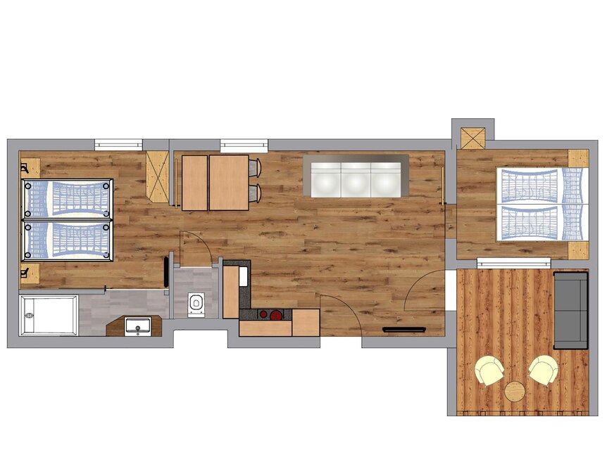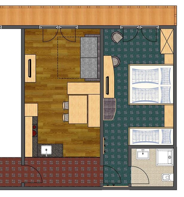 double bed (1 bed/2 mattresses), sofa, pullout couch max. pers.: 1