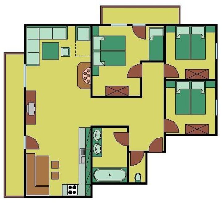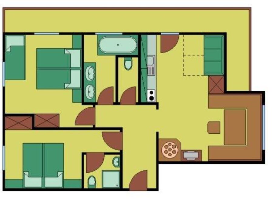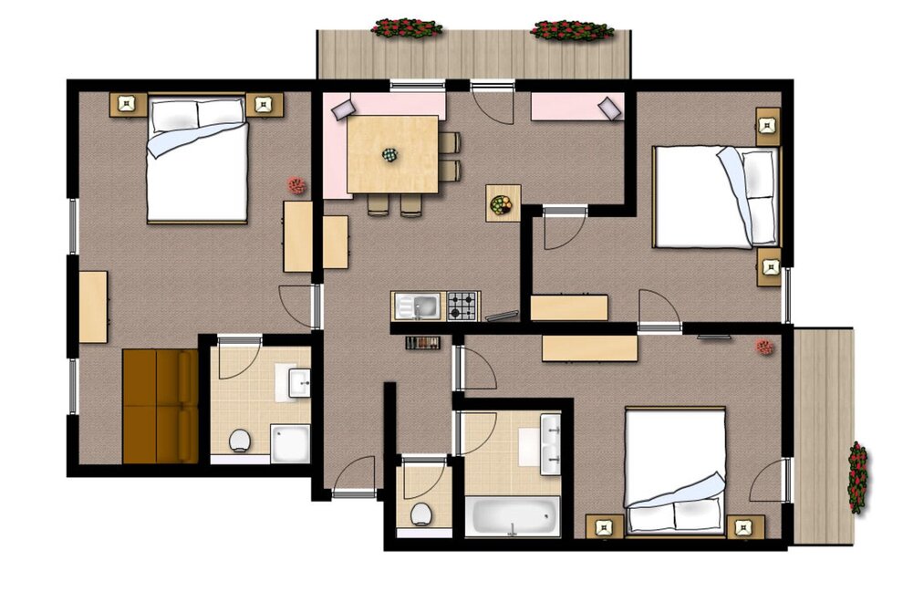Apartment for 6 - 8 people (85 qm), 3 bedrooms, 2 bathrooms, extra toilet, living room with tiled stove, kitchen with dishwasher and oven, 2 balcony.