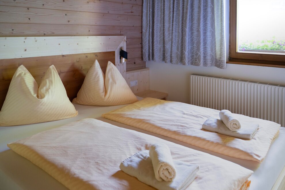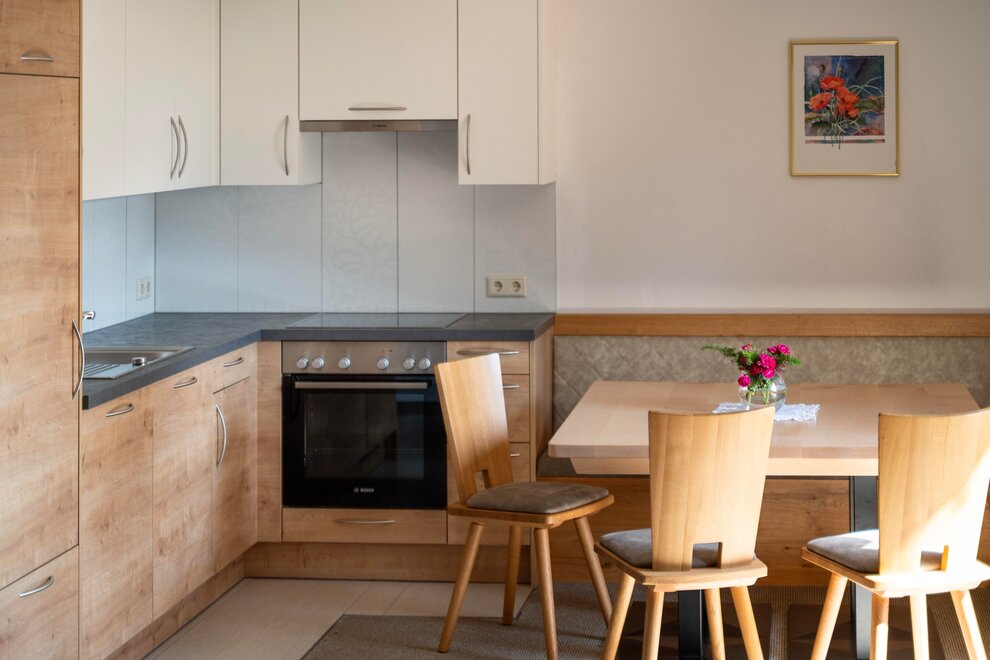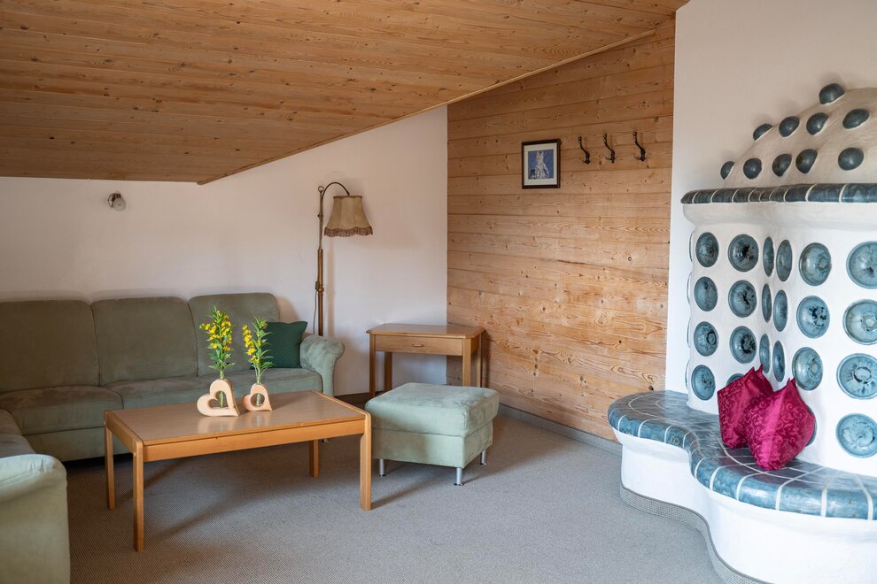 Apartment for 8 people (96qm), 3 bedrooms, bathroom, toilet, kitchen/diner with dishwasher and dining table, large living room with sofa-bed and a tiled stove, balcony.