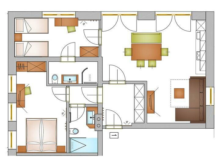 The cozy and spacious apartment Schwab Top 3 with 76m² consists of: