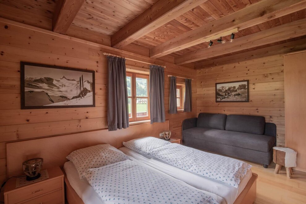 Cozy room 16 m² with double bed and sleeper chair, cable TV, shower/WC, balcony with terrace furniture. In the center of Großarl. The room has a coffee capsule machine.