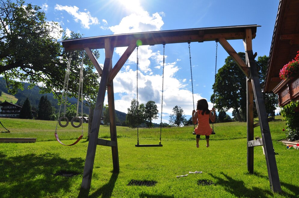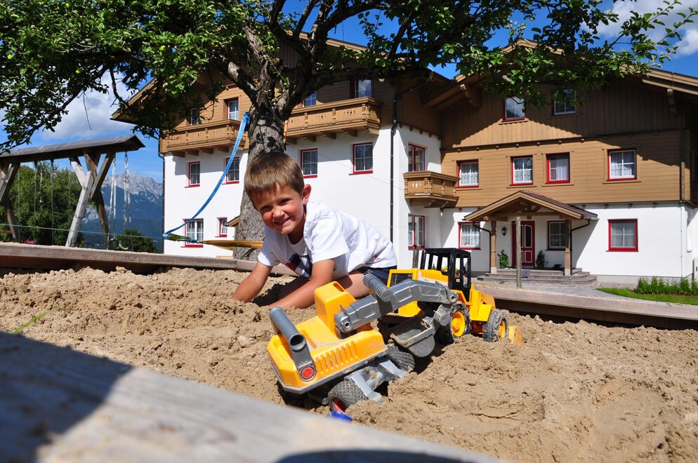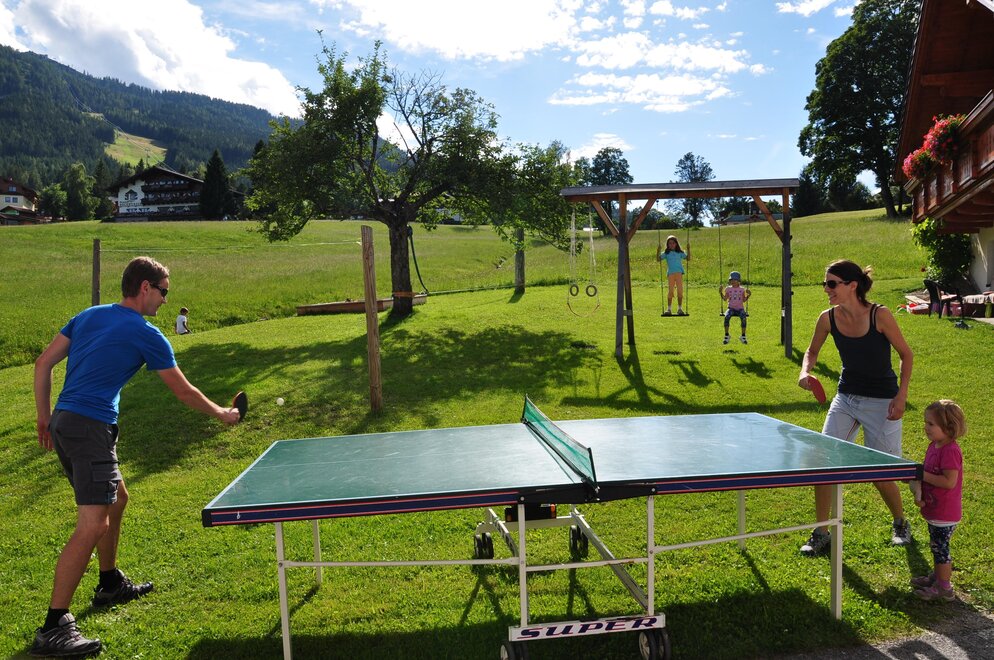 Families feel particularly welcome with us. Sandboxes, swings, height-adjustable horizontal bars, table tennis, a giant trampoline with airflow and twin spring technology, a small natural stream, and our children's fleet (scooters, balance bikes, pedal tractors, bicycles, Bobby cars) await little explorers. And in the vicinity: Hopsiland Planai, Hochwurzen Mountain Go-Kart, Rittisberg, Reiteralm, Hauser Kaibling and much more.