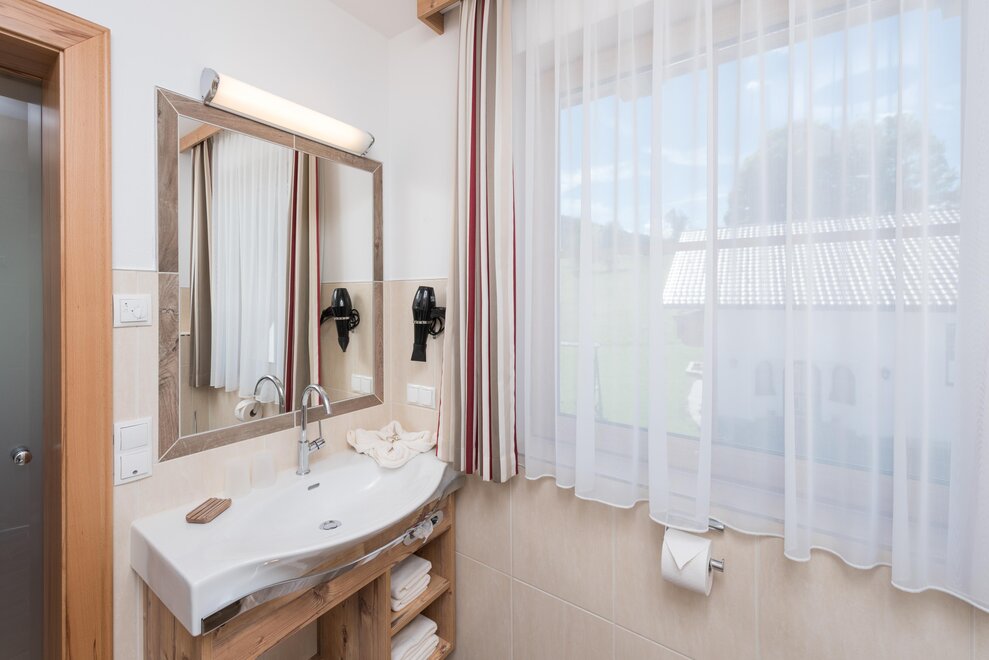 The Suite Ennstal consists of the two double rooms 'Talblick' and 'Enns', each with one bathroom and a common living room. The furniture of the two double rooms were made of beech wood in loving craftsmanship. Each of the two rooms has free WiFi, cable TV, carpeted floor, floor heating and a bathroom (shower/toilet).